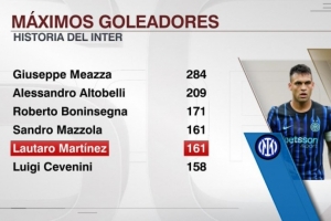 体育资讯11月10日讯 国米在本轮意甲焦点战2-0力克拉齐奥,劳塔罗建功。数据统计显示他也追平马佐拉并列国米队史射手榜第4位。