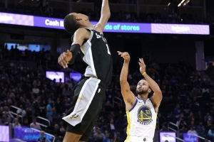 上半场卡斯尔不停攻击库里,库里还以内切,15分。下半场开始,马刺路径依赖,瓦塞尔和巴恩斯追打库里,但库里做了个动摇马刺根本的事: