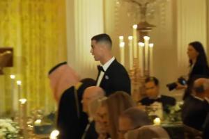 体育资讯11月19日讯 沙特媒体晒出视频,C罗出席白宫为沙特王储举行的官方晚宴。