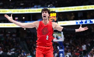 GIF-阿夫迪亚失误被打反击,开拓者落后19分
