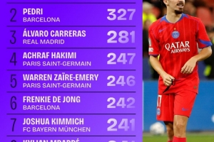 五大联赛创造机会榜:迪马尔科、居勒尔列二三,姆巴佩、B费在列