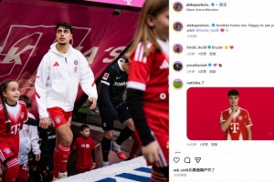 于帕社媒晒庆祝照:6球逆转证明了拜仁的韧性 很高兴打开进球账户