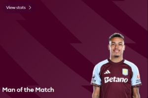 双响+任意球制胜,摩根·罗杰斯当选维拉2-1利兹联全场最佳球员