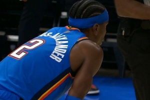 希望没事!巴雷特扣篮落地后脚踝不适 已返回更衣室