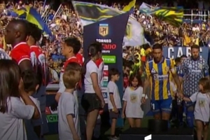 拉普拉塔大学生背身列队欢迎联赛冠军罗萨里奥中央,抗议足协新规