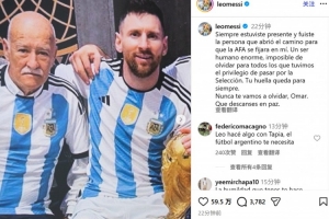 梅西晒出了两人与大力神杯的合照,并撰文悼念:“你一直都在那里,是你为我铺平了道路,让阿根廷足协注意到了我。”