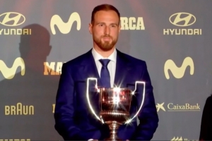 马竞门将奥布拉克领取24-25赛季萨莫拉奖,已是生涯第6次获奖