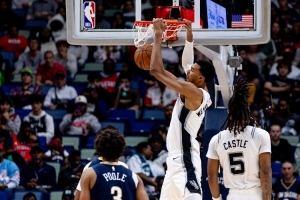 杜林表示:“文班亚马有身材、能移动,我从没见过有哪个中锋能像得分后卫一样打球,但与此同时,他对篮筐的保护又像马努特-波尔一样。”
