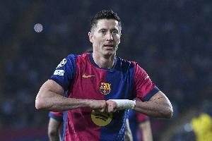这位37岁的波兰中锋本赛季各项赛事为巴萨13场打进8球,德转身价1000万欧元。