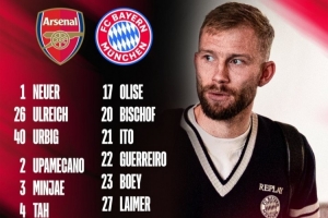 体育资讯11月25日讯 北京时间11月27日周四凌晨4点,欧冠联赛阶段第5轮,拜仁客战阿森纳,拜仁公布了此役球队大名单。